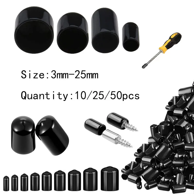 10-50pcs PVC Rubber End Caps, 3-25mm Threaded Pipe Caps, Steel Plastic Pipe Protector Tips, Assorted Size Kit