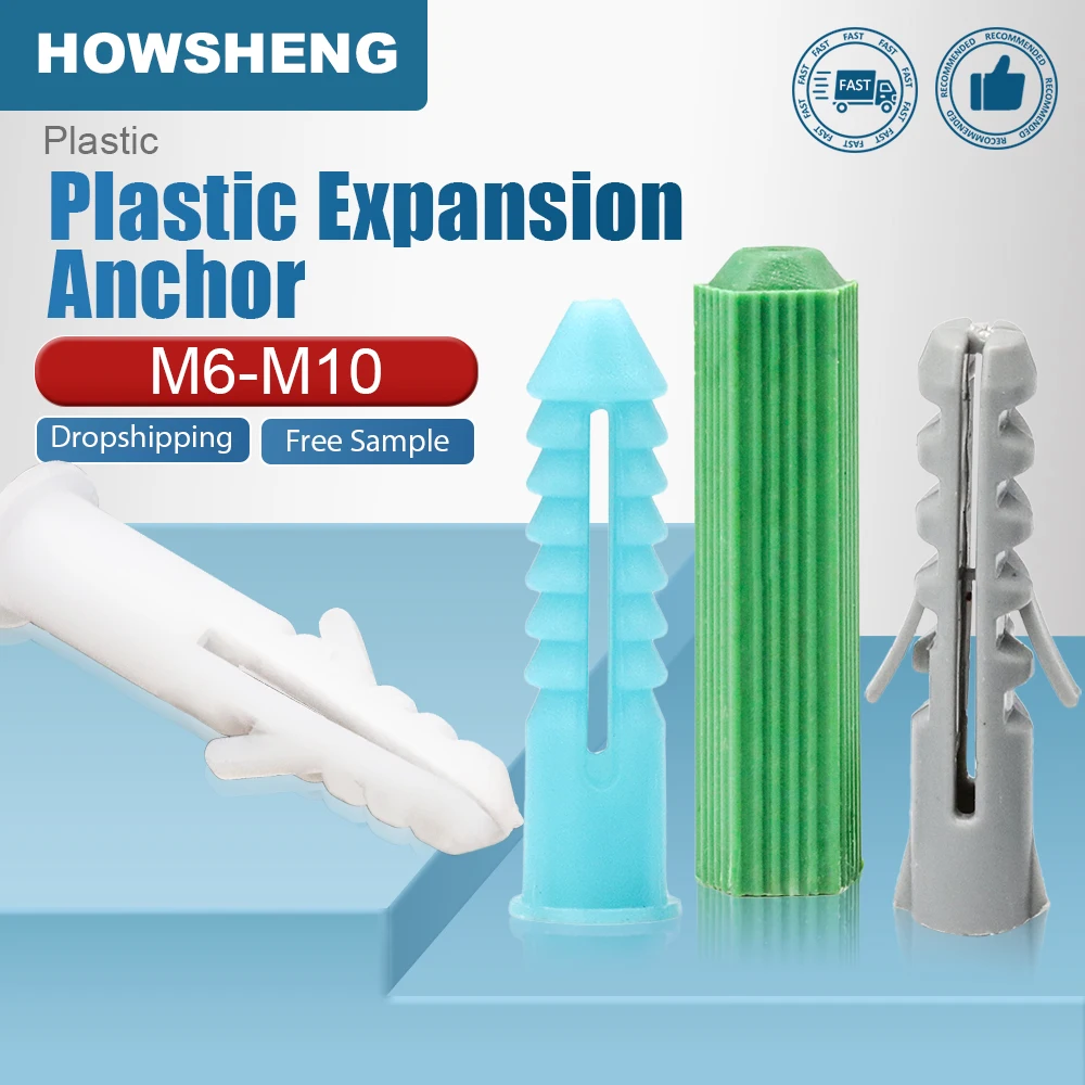 HOWSHENG 20-100pcs Ribbed Plastic Anchor Rubber Plug M6 M8 M10 Plastic Expansion Pipe Tube Wall Anchors for Screw