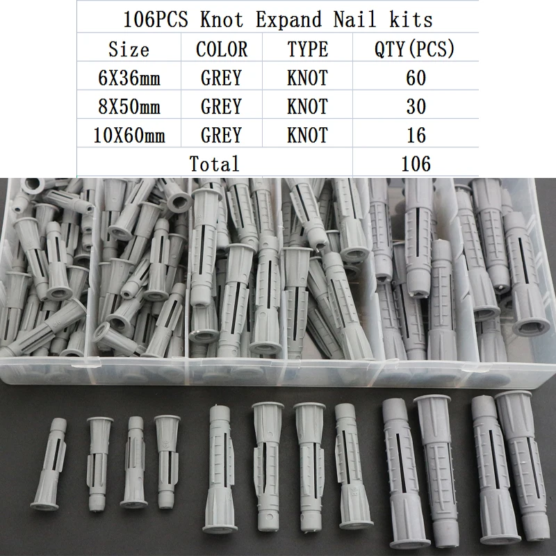 Plastic Knot With/No CapExpand Nail Expansion Pipe M4 M5 M6 M7 M8 M10 M12 Rubber Plug PE Column Draw-Wall Screw Anchors Kits