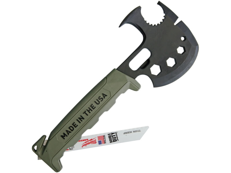 Off Grid Tools PRO Off Grid Survival Axe Pro 11.75in Overall 5in Black Oxide Coated Carbon Steel Axe Head With 3.75in Cutting Edge OD Green Grn Handle