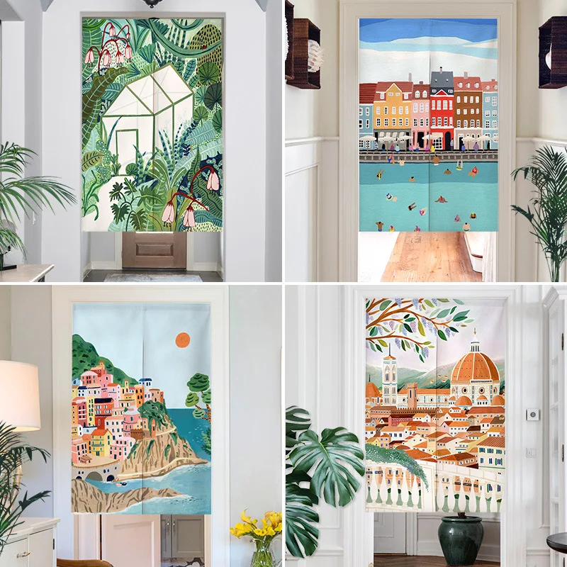 Nordic Ins Hand-painted Painting Door Curtain Bedroom Partition Linen Curtains Entrance Hanging Half-Curtain Without Punching  Read more