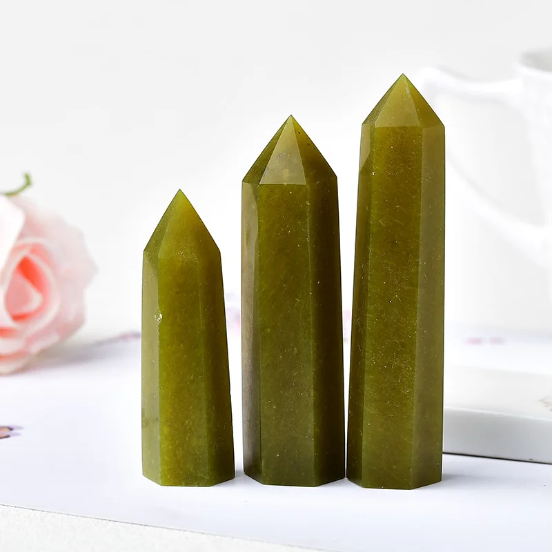 1PC Natural Aura Kiwi Jasper Quartz Crystal Point Wand Healing Stone Meditation Home Decor Reiki Polished Stone Chakra Tower