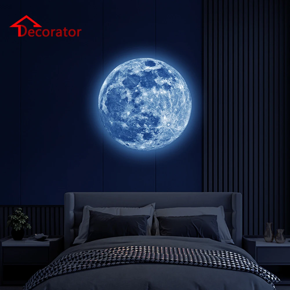 Aesthetic 3D Luminous Moon Wall Sticker Glow In The Dark Fluorescent Sticker PVC Home Kids Room Decals Wall Decor Wallpaper