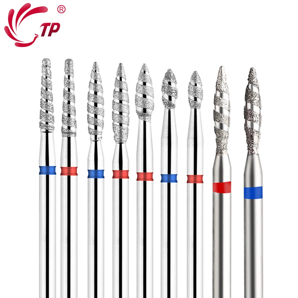 TP 2pcs/lot Tornado Flame Diamond Nail Drill Bit Milling Cutters Pedicure Diamond Burrs for Electric Polisher Accessories Tools