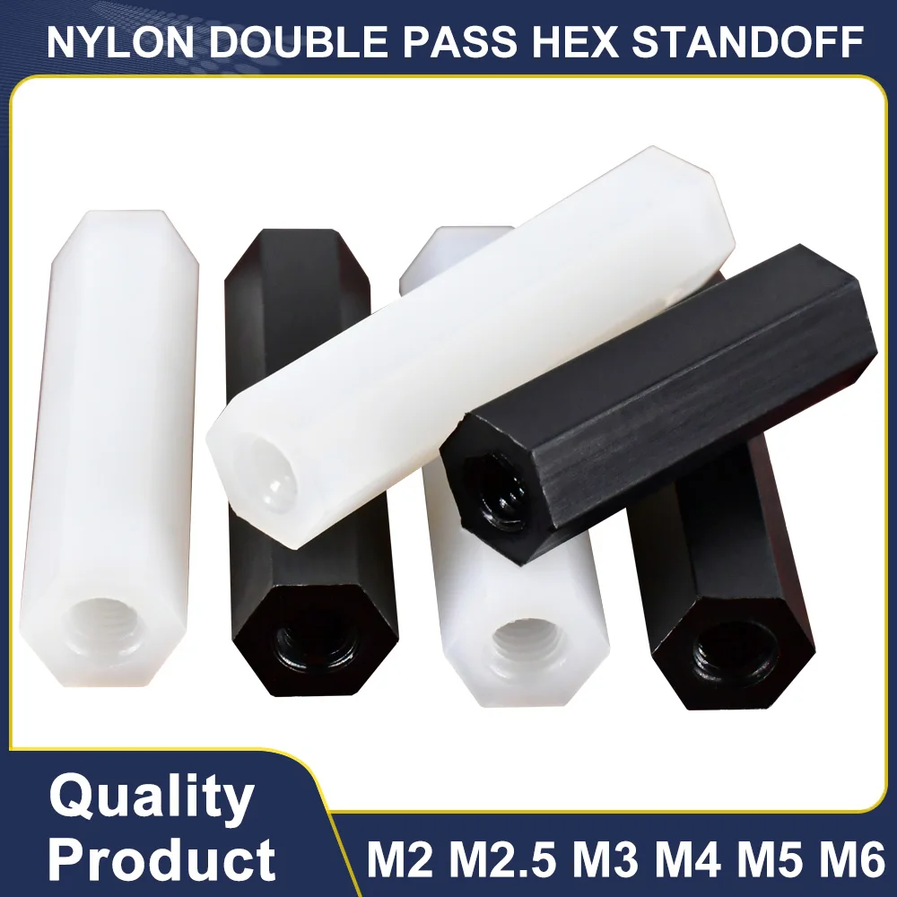 M2 M2.5 M3 M4 M5 M6 Nylon Double Pass Hex Standoff Black or White Nylon Plastic Spacing Screws PCB Motherboard Fixed 10-50Pcs