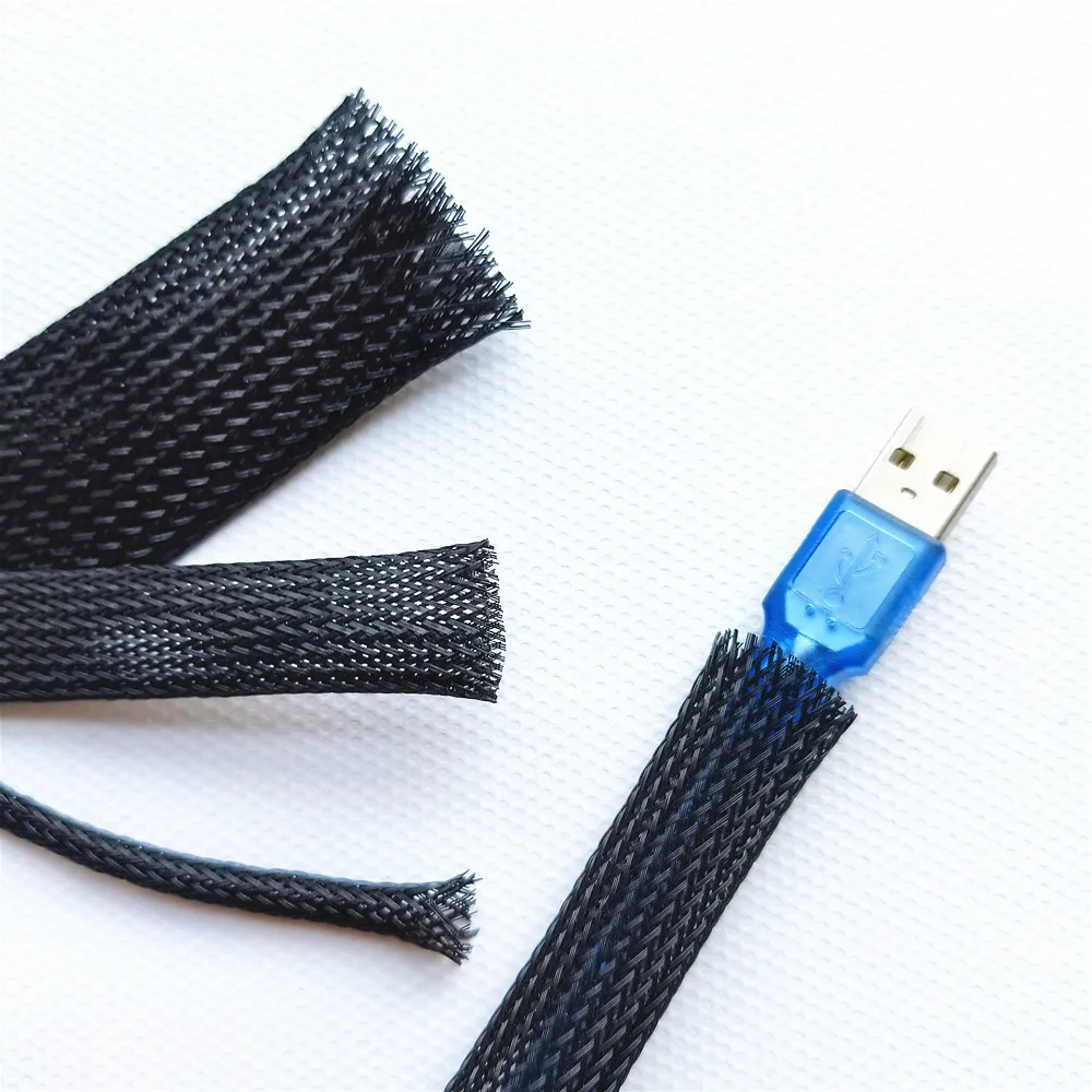 3meters/piece Insulated Braided PET Nylon Wire Cable Sleeve Tube Pipe Stretch Sleeving Data Line Protection Flame-retardant Hose