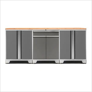 The NewAge Products tool cabinet storage set is constructed with durable 18-gauge steel frames and 19-gauge double-wall drawer fronts, highlighted by a bamboo work surface that combines style and practicality.