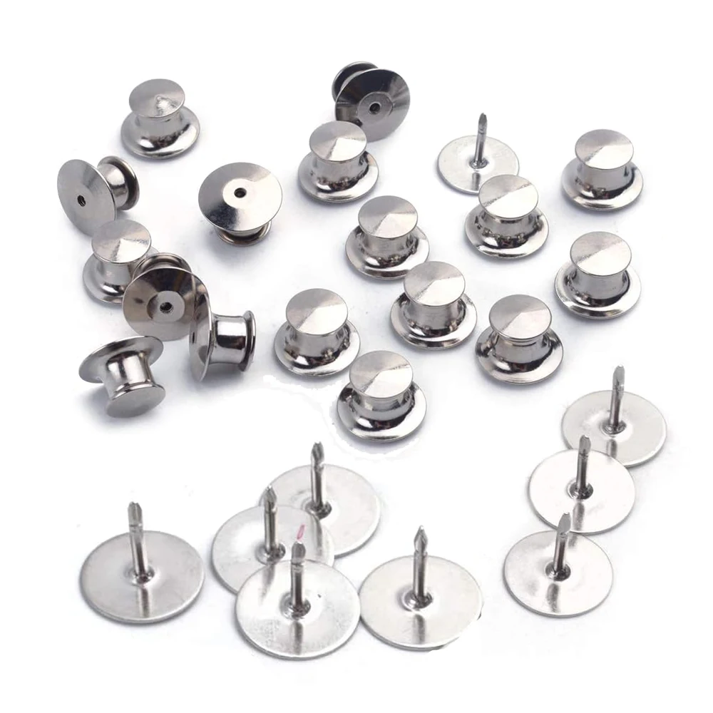40pcs Platinum Colors Clutch Pin Backs with Tie Tacks Blank Pins Kit, Locking Bulk Metal Pin Keepers Locking Clasp