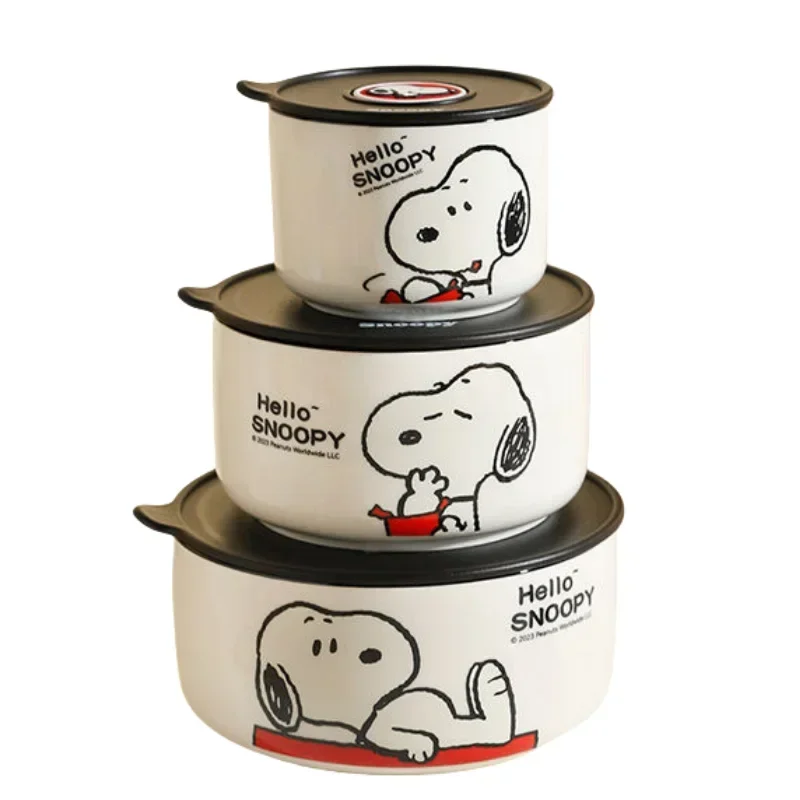 Snoopy Cartoon Ceramic Preservation Bowl Set Cute Creative Instant Noodle Box High Temperature Microwave Heating Resistant