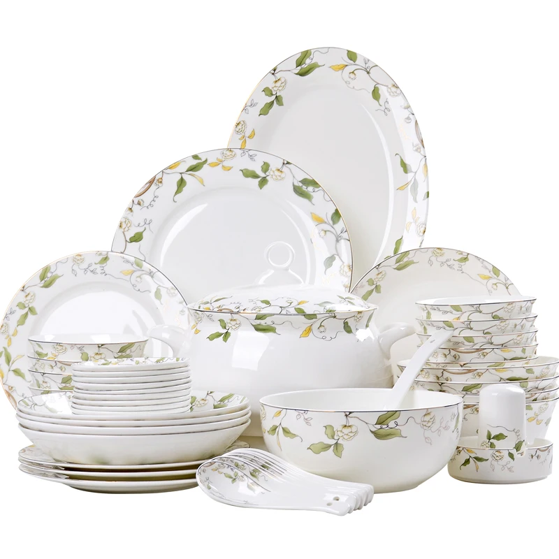 Tangshan Bone Porcelain Bowls and Dishes with Pottery Bowls and Plates with Soup Bowls and Noodles