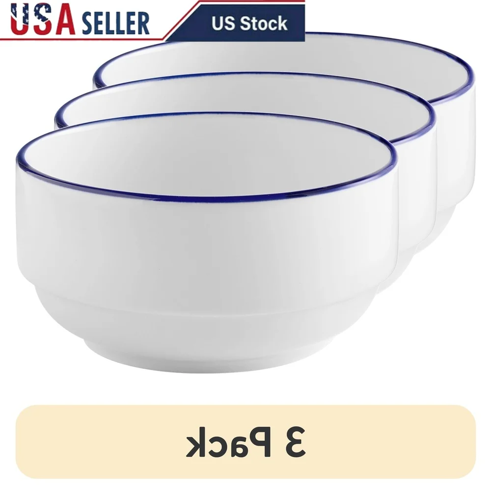 3 Pack Chiara Stoneware Dinner Bowl Dishwasher Microwave Safe Glossy Finish Durable Soup Salad Dessert Serving Bowl