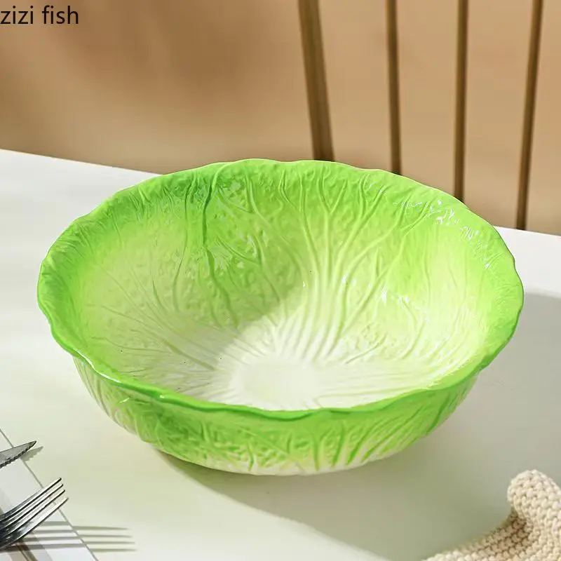 Creative Cabbage Bowl Ceramic Dessert Bowl Salad Bowl Breakfast Bowls Ramen Bowls Underglaze Color Molecular Cuisine Tableware