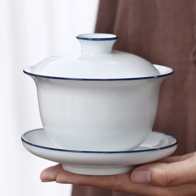 White Porcelain Cover Bowl, Hand-painted, Sancai Gaiwan, Large Blue and White Ceramic, Kungfu Tea Set, Tea Maker