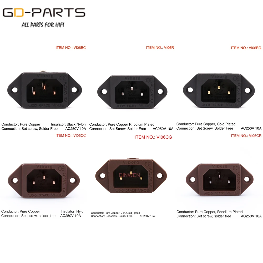 Viborg Pure Copper Mains AC Power Socket Plug Connector IEC320 C14 Power Cord Inlet Receptacle 24K Gold Rhodium  Read more