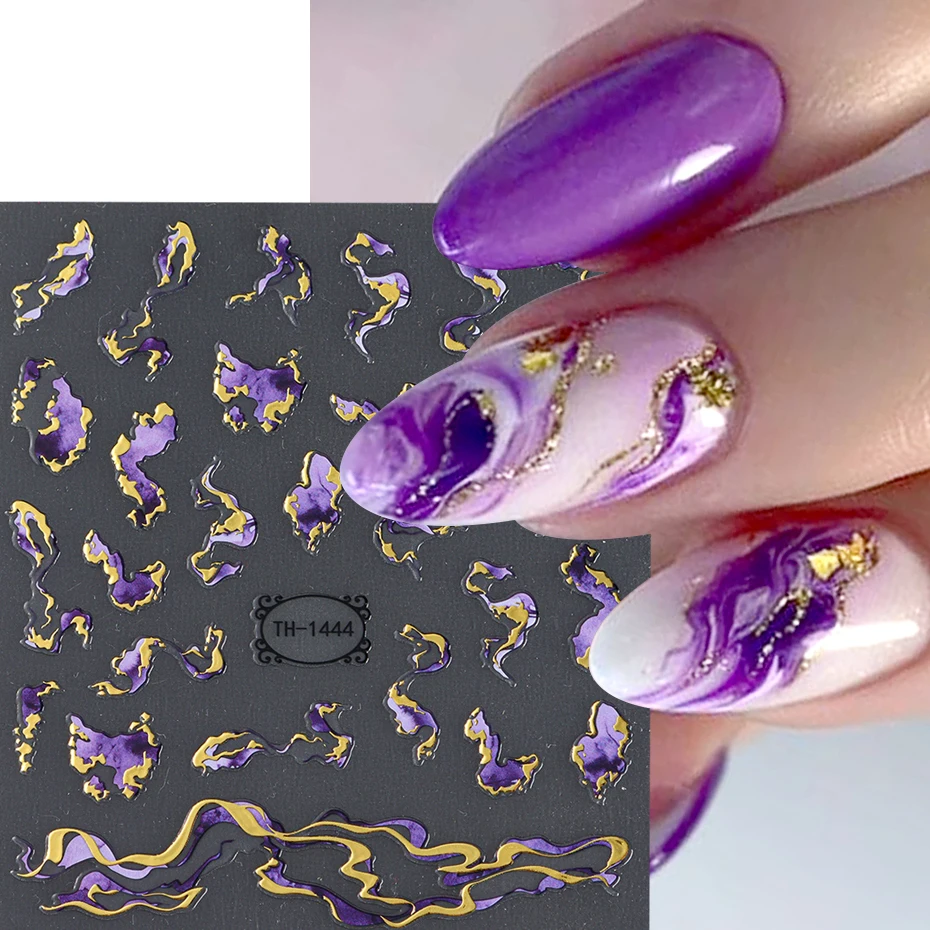 Nails Stickers Purple Blue Brown Ink Design Decals Gold Decorations Art Self-Adhesive Holographic Gel Slider Manicure Supplies