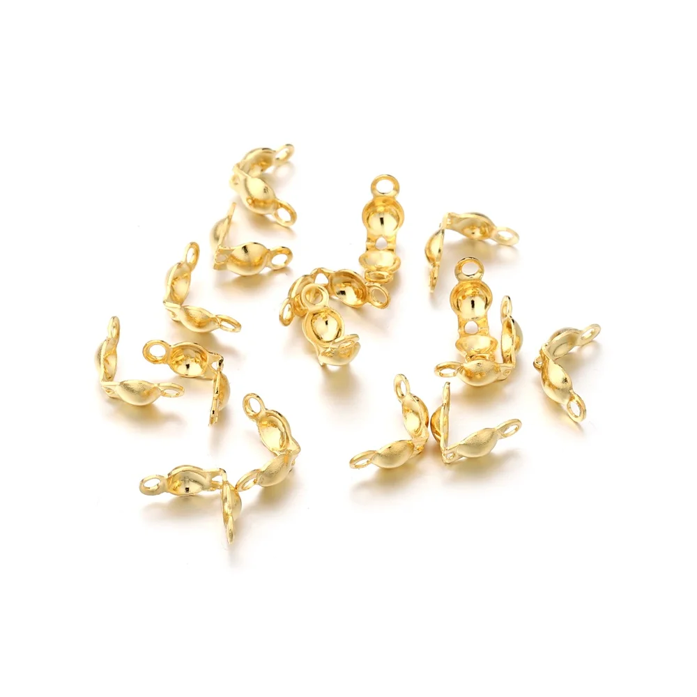 100PCS/Box Stainless Steel Clamshell Bead Tips Knot Covers, Gold Plated Thread Clip Buckles Accessories For Jewelry Bracelet DIY