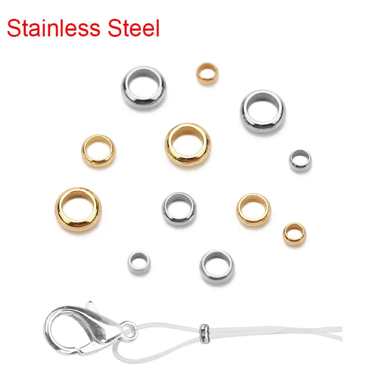 100pcs Gold Color Stainless Steel Crimp End Beads 2 2.5 3 mm Round Stopper Spacer Beads For DIY Necklace Jewelry Making Supplies  Read more