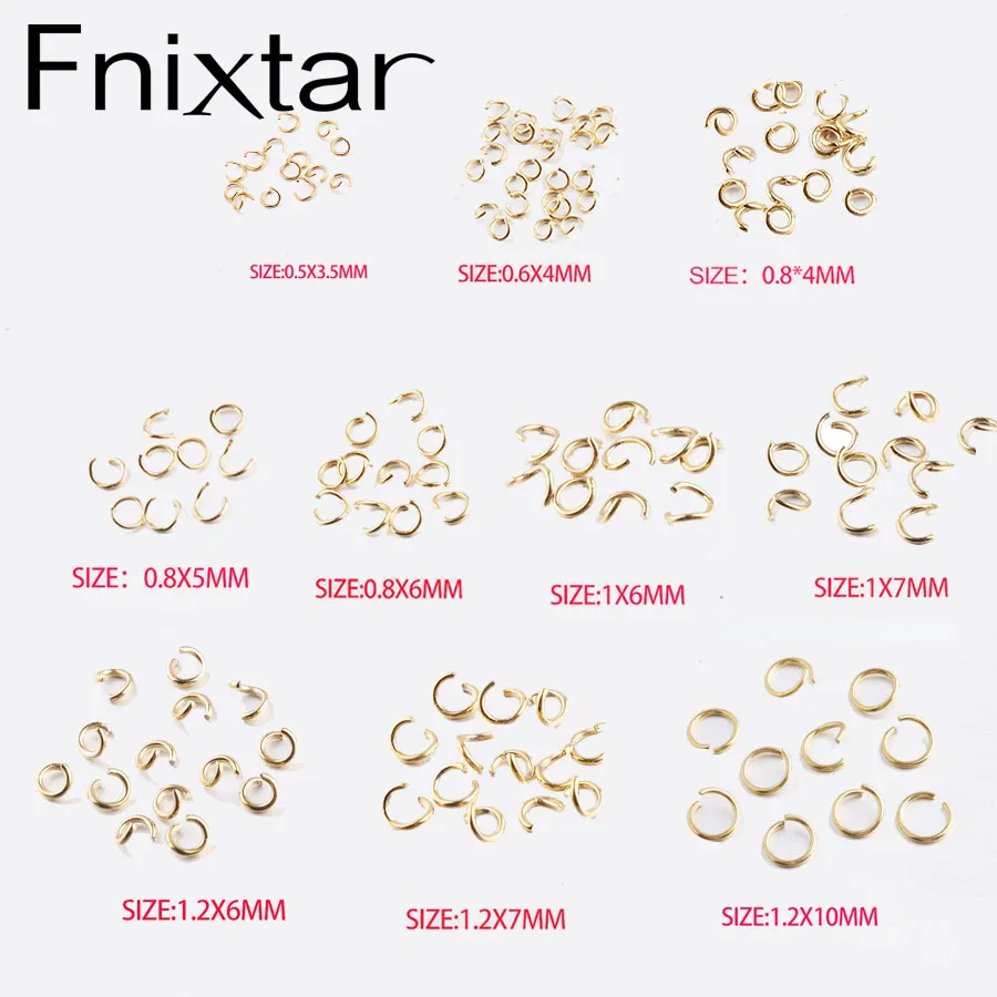 Fnixtar 100pcs/Lot 0.5*3.5mm 0.6*4mm 0.8*4/5/6mm 1*/6/7mm 1.2*7mm PVD Plating Gold Color Stainless Steel Open Jump Ring Finding