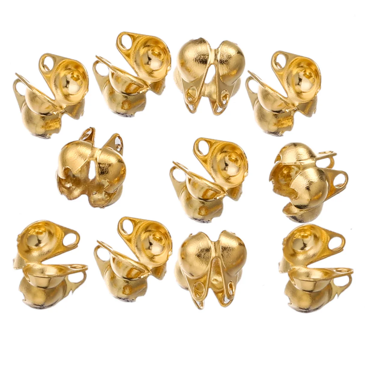 50pcs/lot Gold Stainless Steel Connector Clasp Ball Chain Calotte End Crimps Bead Caps for DIY Jewelry Making Supplies Wholesale