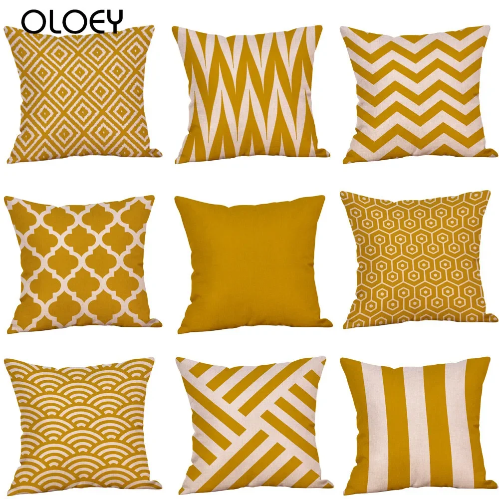 Multi-color Cotton Linen Mustard Pillow Case Yellow Geometric Fall Autumn Pillow Covers Decorative Cushion Cover 45*45cm