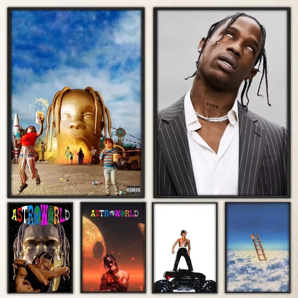 Hip Hop Singer T-Travis S-Scott Poster Vintage Prints Art Home Canvas Painting Bathroom Kitchen Bar Accessories Wall Sticker