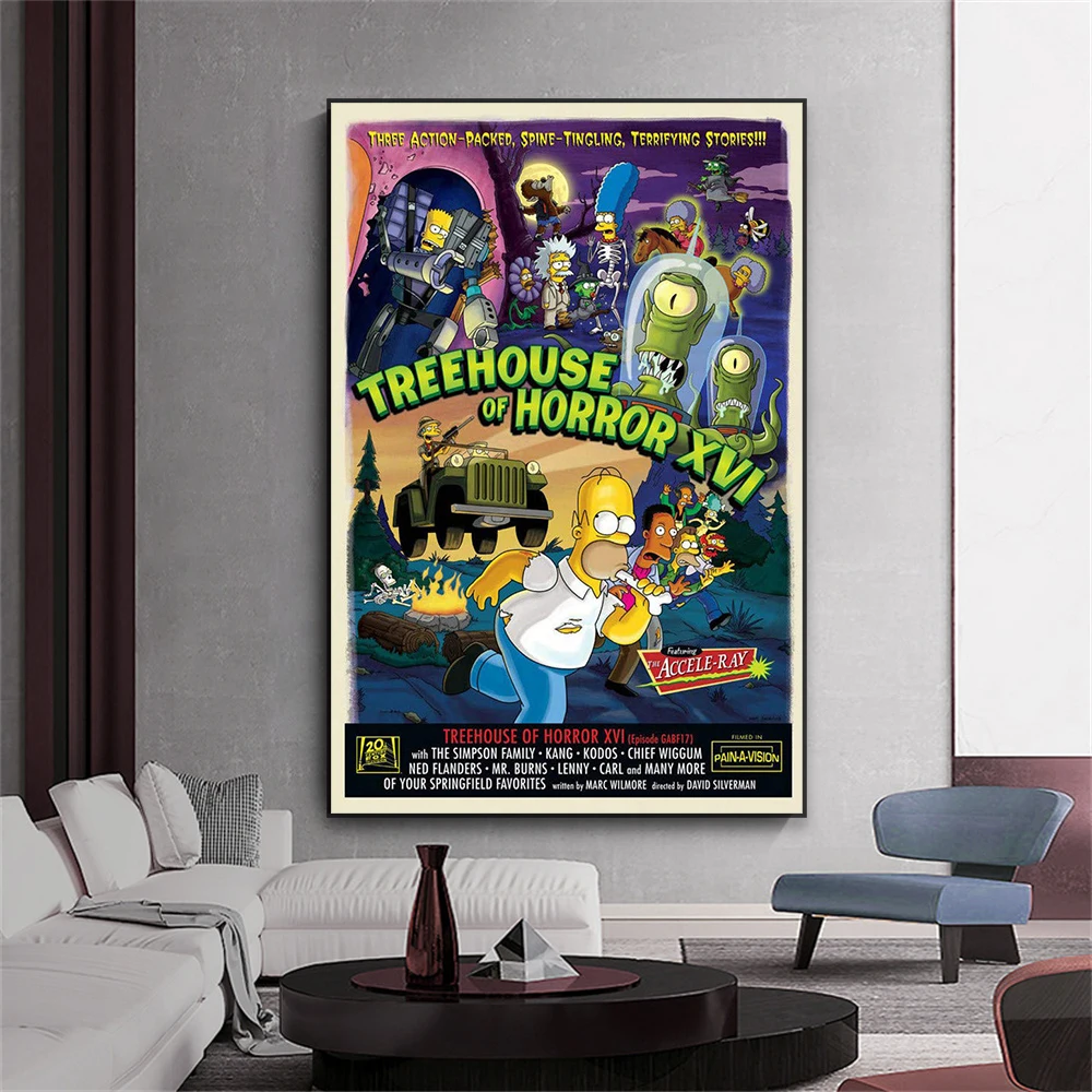 Vintage Poster The Simpsons Treehouse Of Horror Disney Wall Art Poster Cartoon Funny Kitchen Canvas Painting Home Bedroom Decor