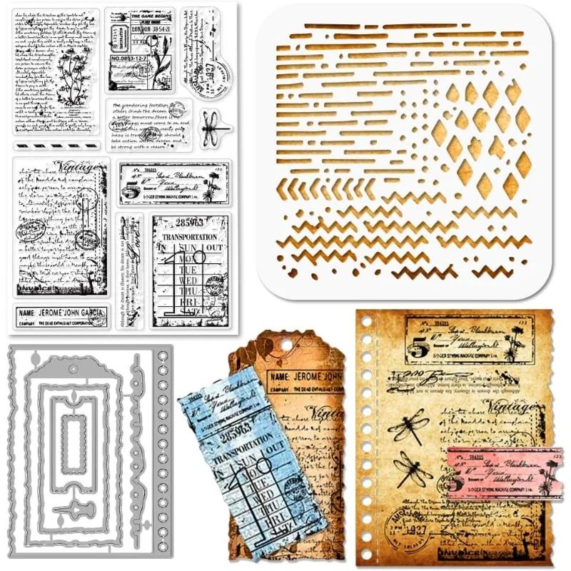Retro Text Background Silicone Clear Stamps Metal Vintage Postage Stamp Ticket Frame Cutting Die Cuts PET Paint Craft Stencils  Read more