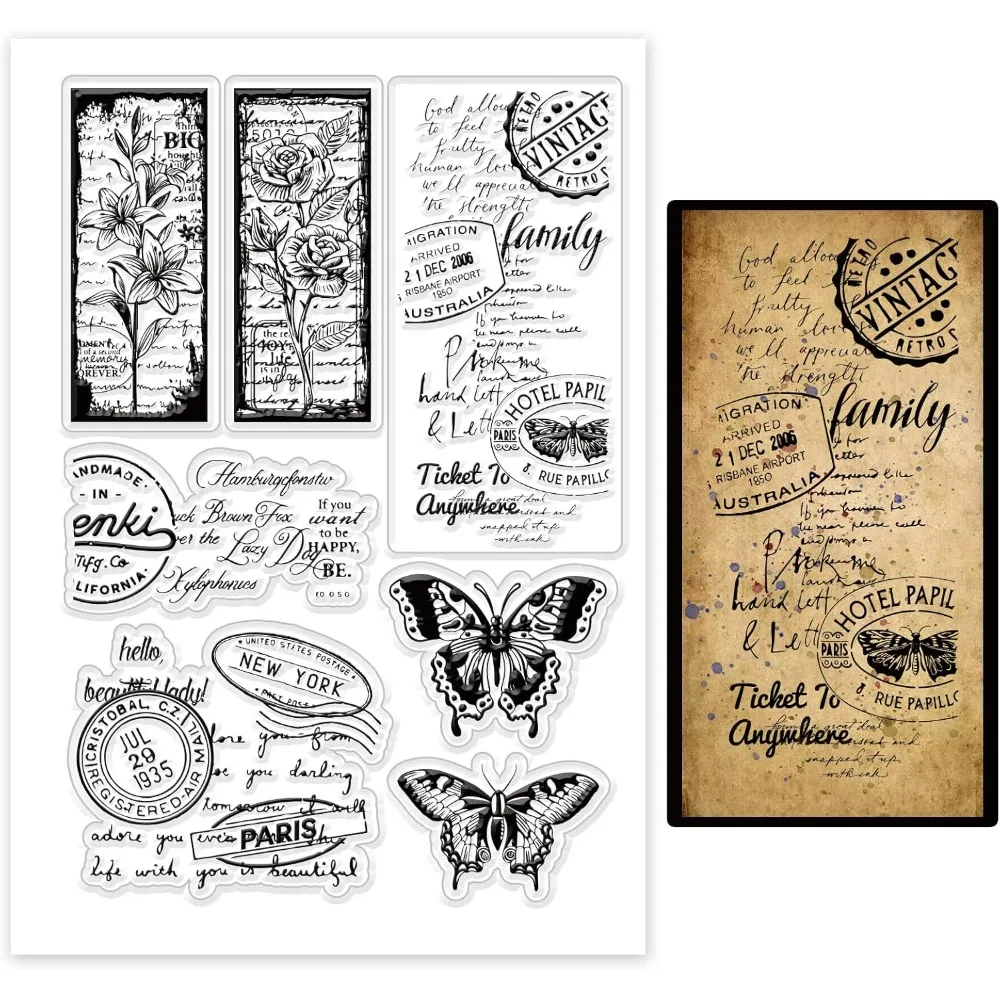 Vintage Flower Frame and Text Background Transparent Clear Stamps Butterflies Roses Embossing Stamp Sheets Silicone Clear Stamps  Read more