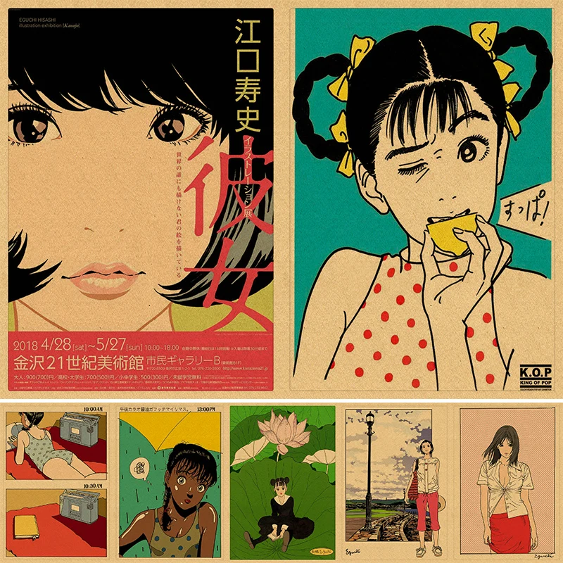 Eguchi Hisashi Anime Poster, Kraft Paper Vintage Print 4K High Quality, Home Interior Decoration Picture Art Wall Sticker