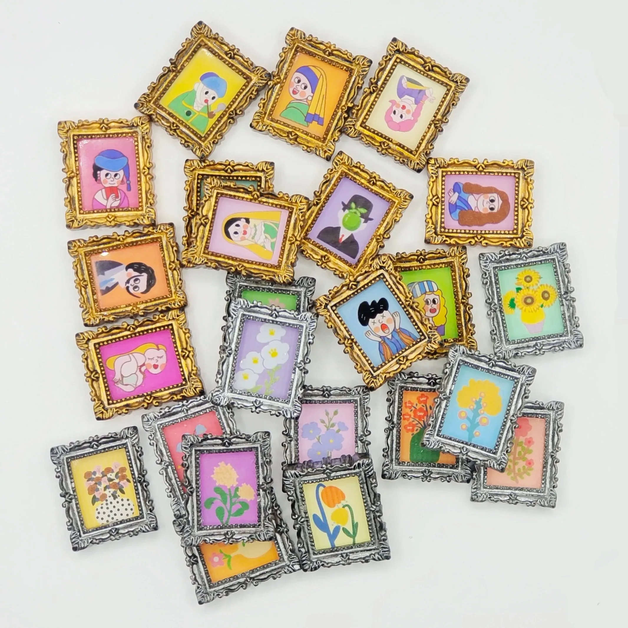 1:12 Miniature Painting Mural Wall Picture Creativity Frame Mural Wall Painting For Living Room Golden Framed Dollhouse Decor