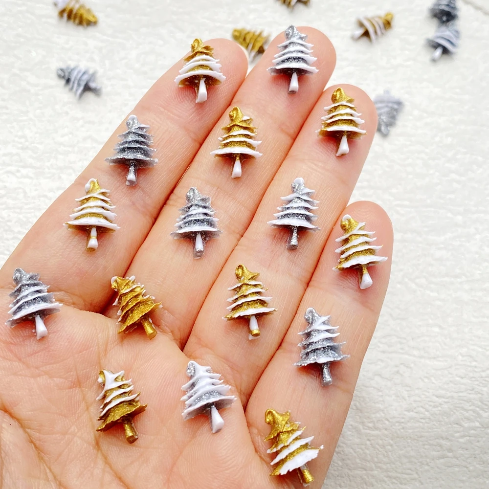 50pcs New Hybrid Resin Cute Mini Christmas tree Nail Art Flatback Rhinestone DIY Christmas Scrapbook Crafts