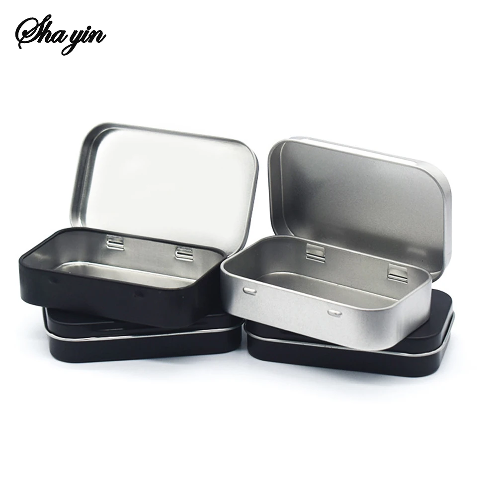 Metal Rectangular Empty Mini Tin Box Tinplate Push Candy Pill Cases Bins Jar Hinged Containers Small Organizer Storage Box