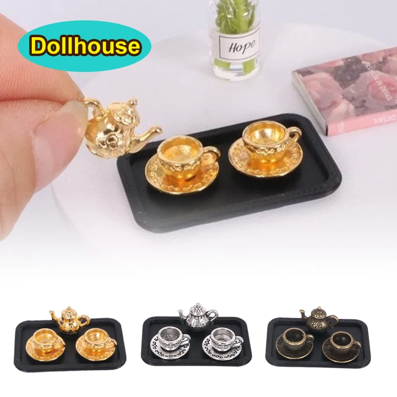2pcs Dollhouse Accessories Mini Golden Teapot Decoration