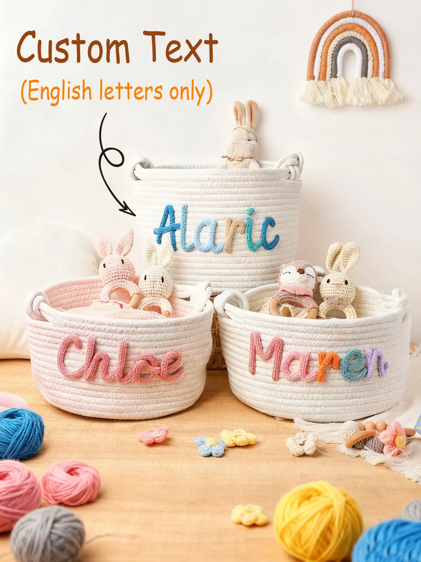1pc custom personalized vintage handmade round storage basket, customized letter name, daily life home decoration/Christmas gift