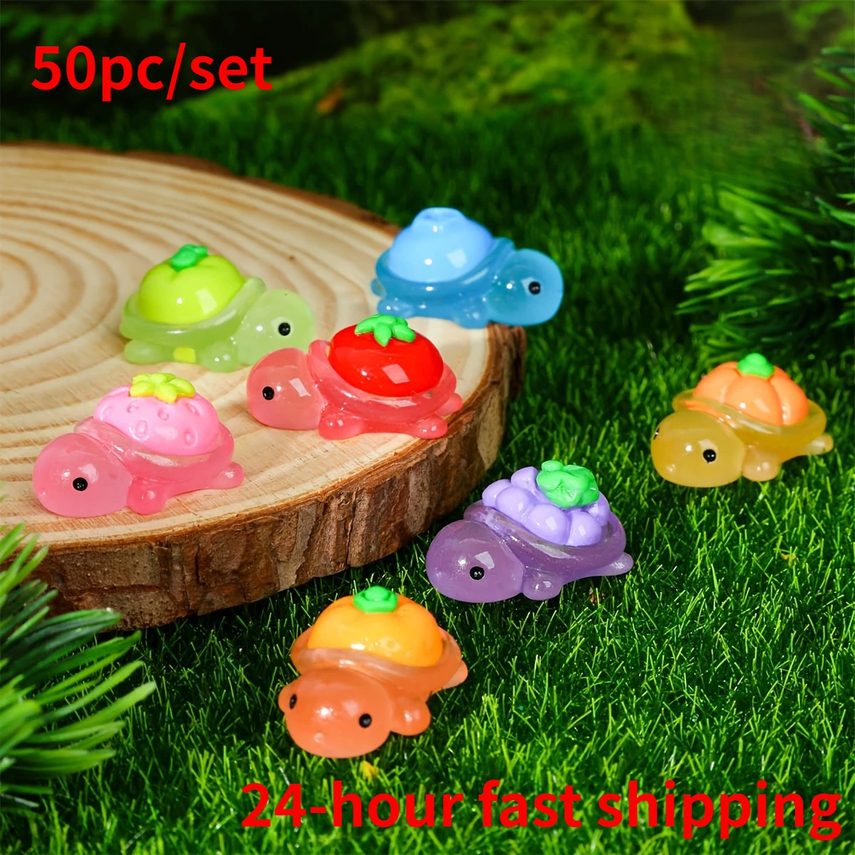50pcs 3D Luminous Fruit Turtles for DIY Jewelry Making, Micro Scenery Car Resin Decoration Handicrafts And Birthday Party Gifts