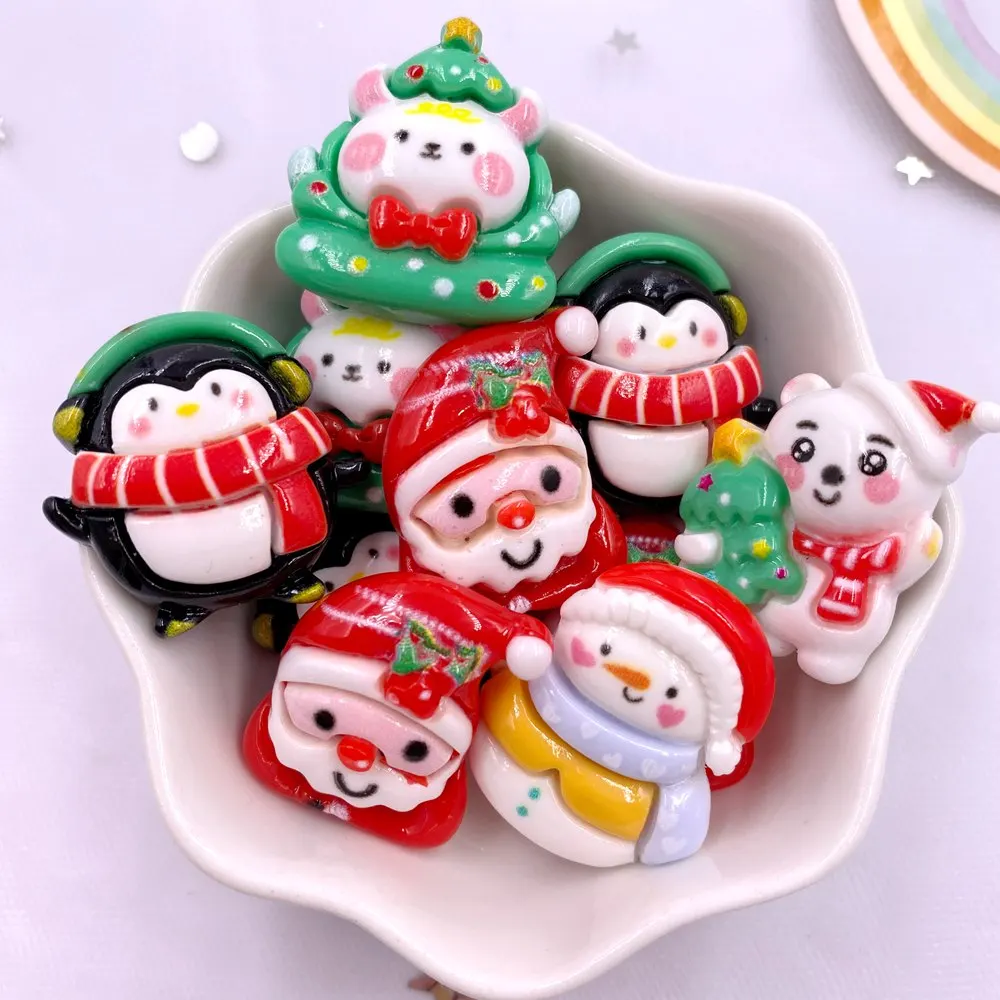 Resin Colorful Kawaii Cartoon Christmas Tree Bear Snowman Penguin Flat back Figurines 10PCS DIY Bow Scrapbook Accessories Crafts