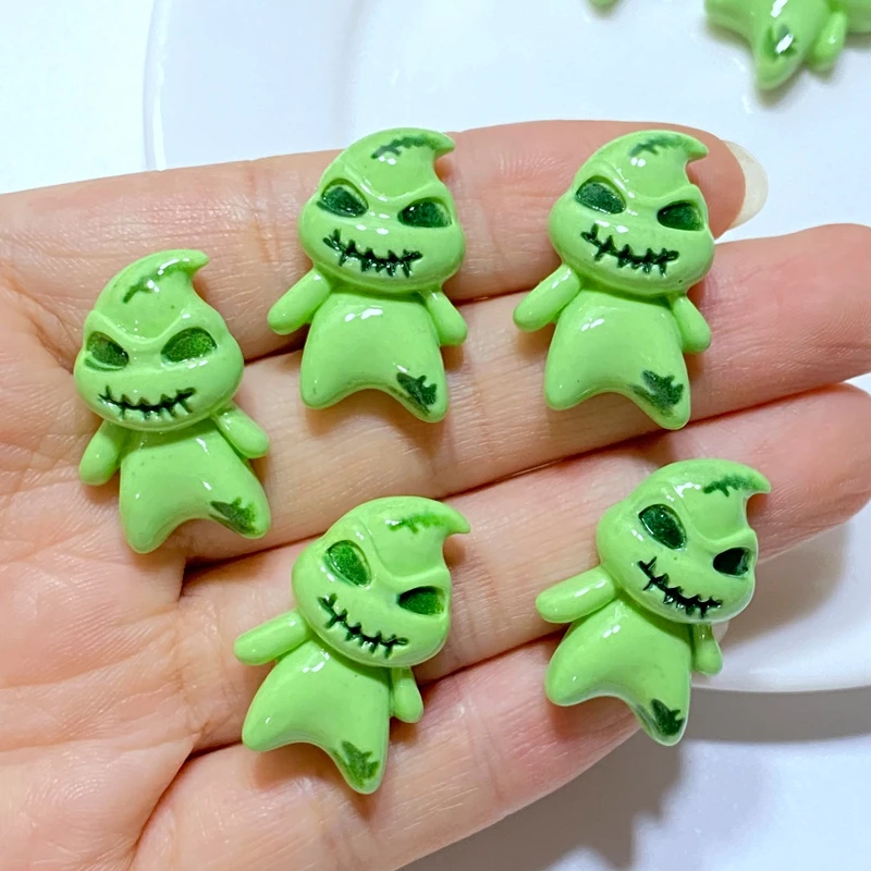 Resin Green Ghost Flatback Cabochon Stone Figurines Appliques Home Decor Crafts 10Pcs DIY Christmas Halloween Scrapbook