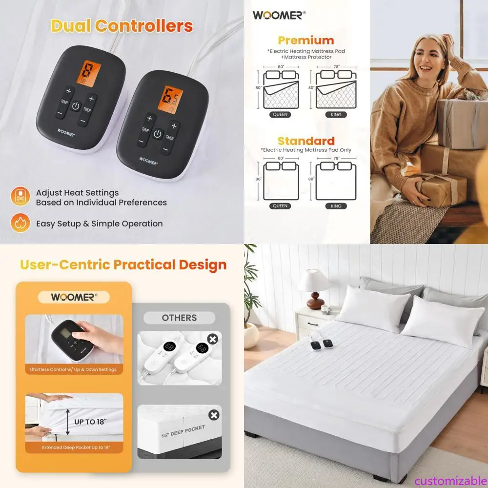 Queen Size Electric Heated Mattress Pad, Dual Control, 60x80, 1-10 Heat Levels, 0.5-12H Auto-Off Timer, 18 Inches Deep  Read more
