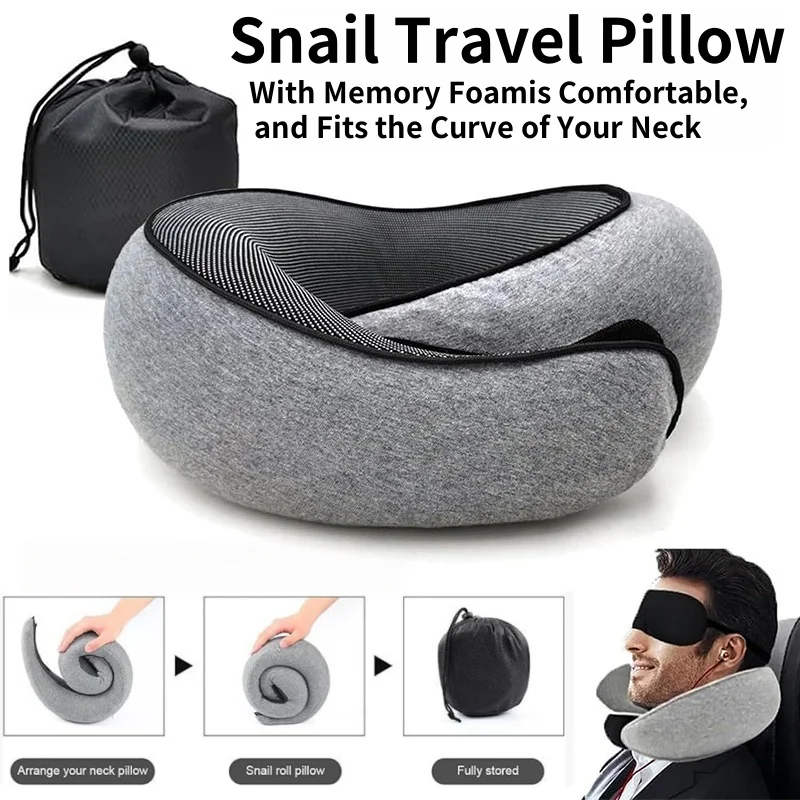 Travel Neck Pillow Memory Foam U-Shaped Pillow Snail-Style Travel Neck Support Portable Adjustable Soft Lunch Break Sleep Pillow