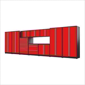 Proslat Garage Cabinets 12-Piece Glossy Red Cabinet Set with Silver Handles and Powder Coated Worktop