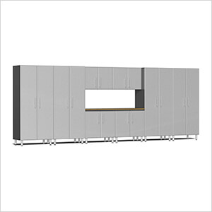 Ulti-MATE Garage Cabinets 9-Piece Garage Cabinet Kit with Bamboo Worktop in Stardust Silver Metallic