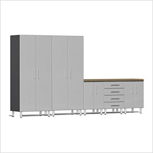 Ulti-MATE Garage Cabinets 5-Piece Garage Cabinet System with Bamboo Worktop in Stardust Silver Metallic