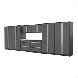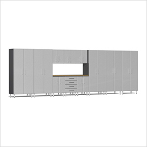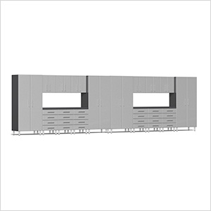 This eighteen (18) piece kit with upgraded channeled and recessed worktop provides versatile oversized shelves / drawers, and space saving wall storage to get you clutter-free quickly.