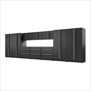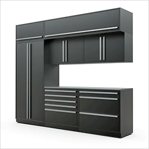 This five (5) piece kit with recessed and channeled worktop provides versatile oversized shelves / drawers, and space saving wall storage to get you clutter-free quickly.