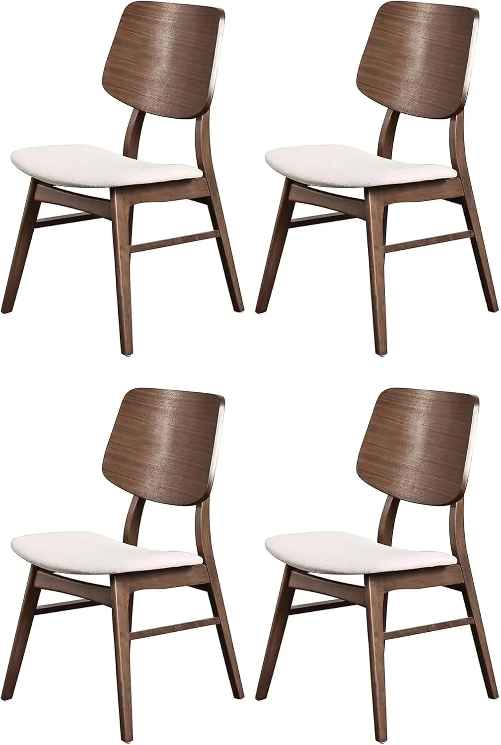 Oscar Dining Chair (Set of Four), 100% Polyester Natural Beige Fabric, Walnut Brown Finish