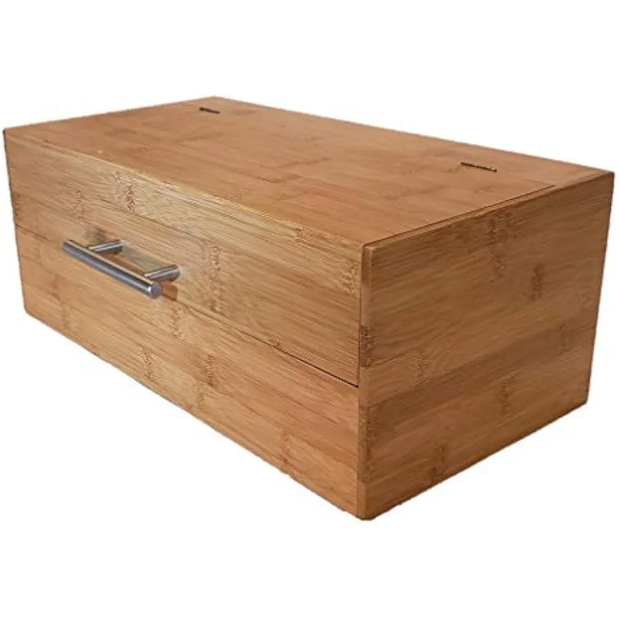 Natural Bamboo Wood Storage Box | Large Bread Box | Kitchen Countertop Organizer | Hinged Lid with Handle