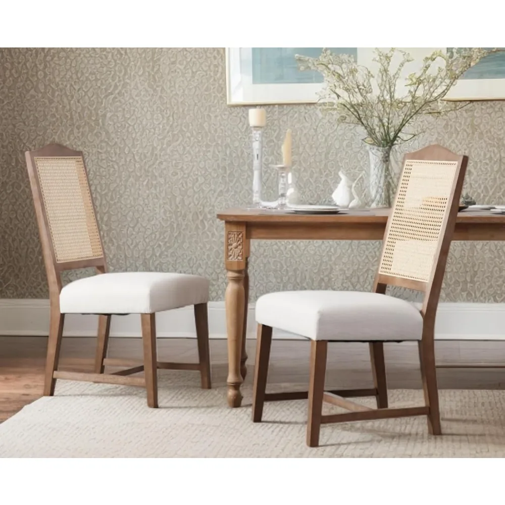 Rattan Dining Chairs Set of 2 Linen Upholstered Dining Room Chairs with Cane Back Mid Century Modern Kitchen Chairs Natural Woo