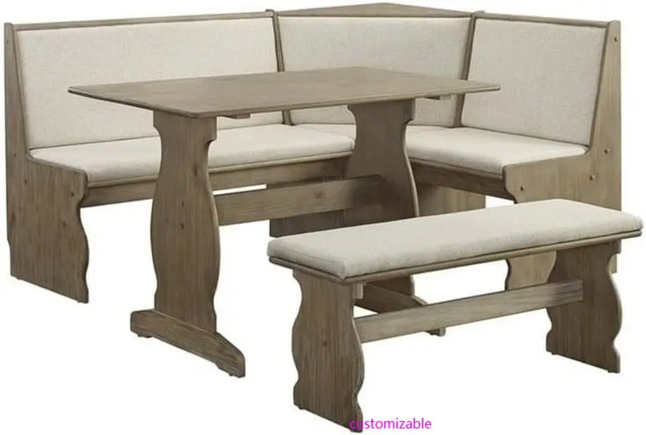 Patio Conversation Indoor 3 Piece Kitchen Breakfast Corner Table Booth Bench Natural Fabric Upholstered Dining Nook Set in Brown