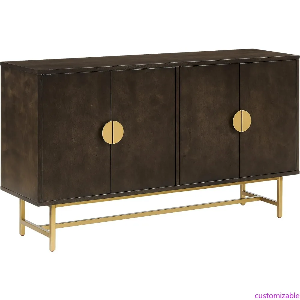 Mid-Century Modern Blair Sideboard with Storage, Dark Brown and Gold Finish, Living Room Credenza Cabinet