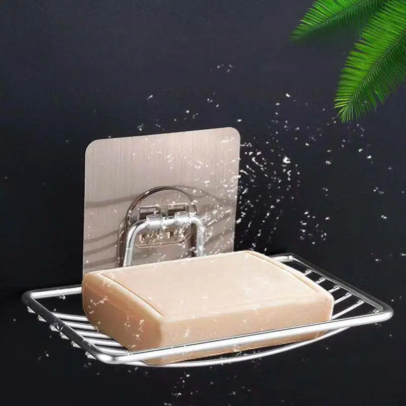 1pc Stainless Steel Soap Rack Soap Box Light Luxury Shelf Punch-free Nail-free Bathroom Single Layer Drain Wall Hanging